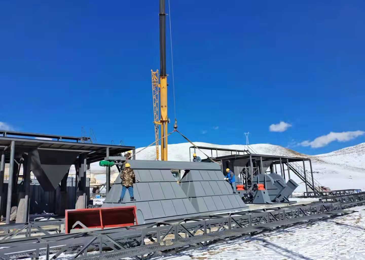 鹽富環(huán)保理塘項目配套的除塵和選粉設(shè)備進入安裝調(diào)試階段,為確保川藏鐵路理塘段項目的順利推進,我司參與此項目的所有成員,在春節(jié)這樣萬家團聚的節(jié)日里,都堅守在自己的工作崗位上,虎力全開,干勁十足!理塘氣候?qū)俑咴瓪夂騾^(qū),海拔約4300米,最低氣溫-30.6℃,冬季干冷而漫長。由于項目地點海拔高,氧氣稀薄,許多人有高原反應(yīng),但他們都努力克服身體上的種種不適,以積極樂觀的心態(tài)面對種種困難,活出了當代勞動者的風采!這幾天,風雪交加,氣候寒冷,我們的施工現(xiàn)場仍然是一派熱火朝天!